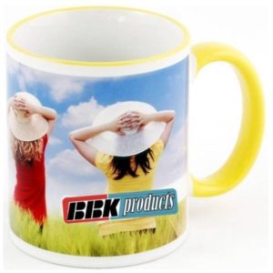 A 3 dl-es fehér kerámia bögre pereme és füle citrom sárga!